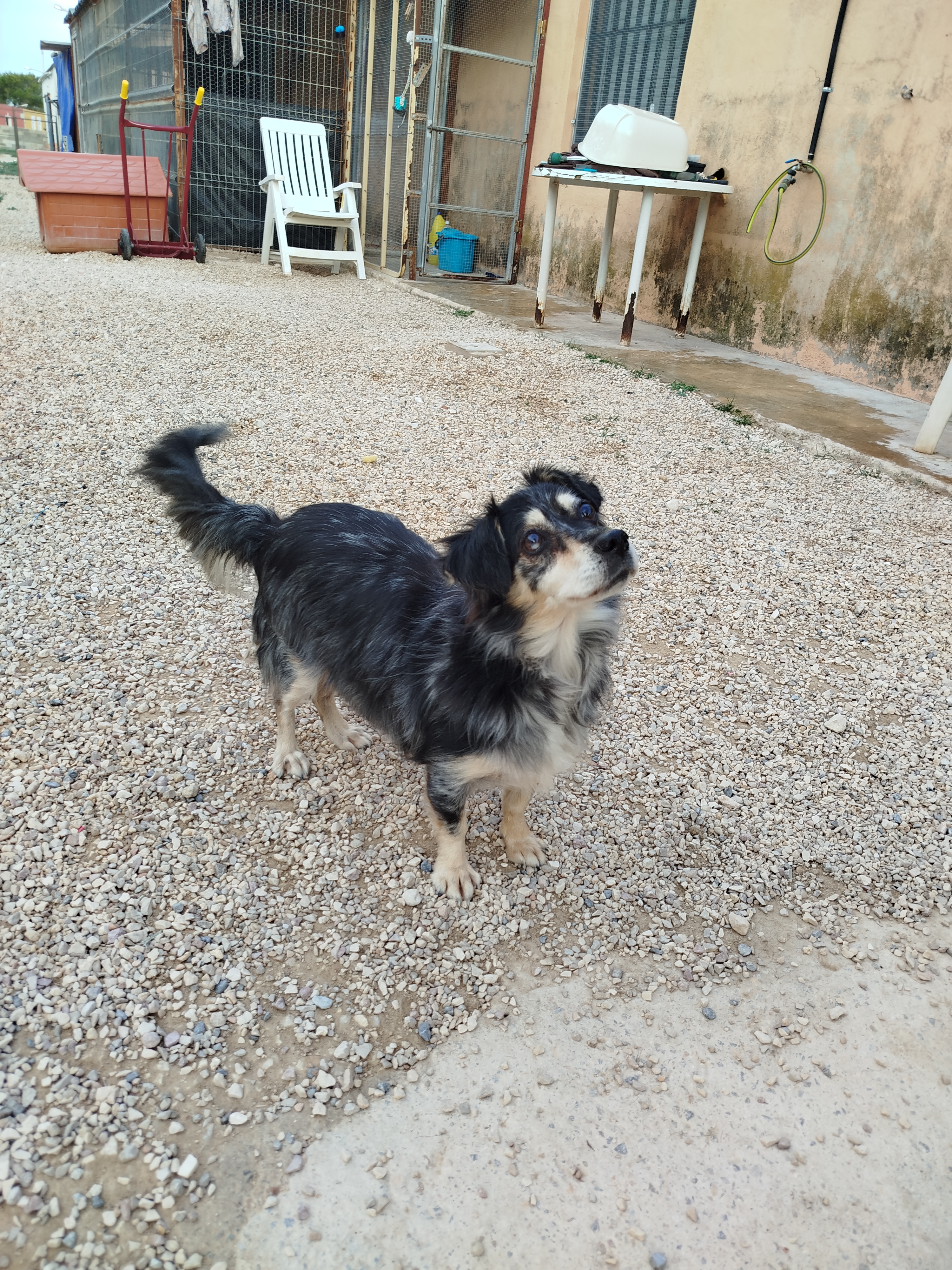 Convive bien en el entorno del refugio y disfruta de la compañía humana, buscando contacto y mostrando confianza. Tiene una energía equilibrada: le gusta moverse y explorar, pero también sabe estar tranquilo y observar.